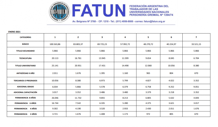 - 3°) Un aumento del 4% sobre los básicos del mes de Noviembre a partir de marzo de 2021.
