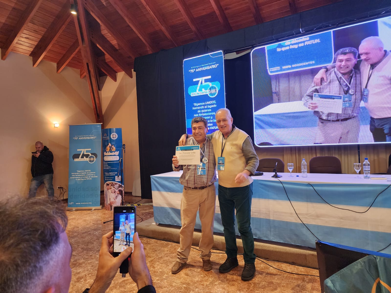 Asimismo se realizó el Reconocimiento a dirigentes sindicales de las distintas asociaciones de base adheridas a FATUN. Y en ese marco se reconoció a nuestro Secretario General: Fernando Cortés por su trayectoria sindical frente a nuestra sindicato y en distintas secretarías de la Federación Argentina de Trabajadores de las Universidades Nacionales.