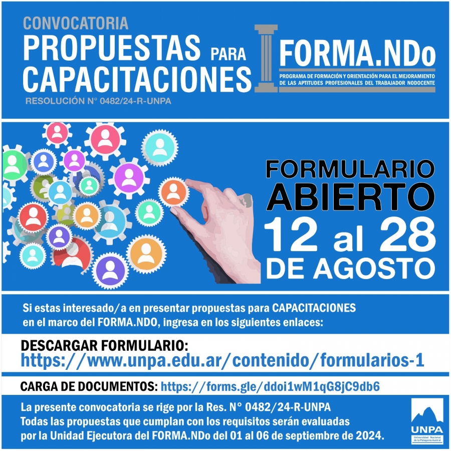 Para presentar propuestas es necesario descargar el formulario que se encuentra en la página web de la UNPA, y cargar los documentos requeridos. (Dejamos los enlaces abajo)