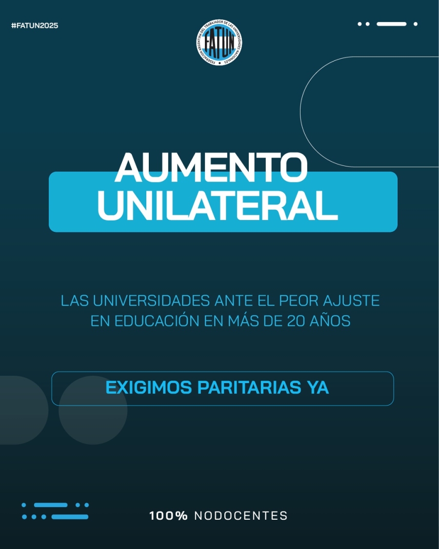 Desde la FATUN queremos recordar que este aumento fue realizado de forma intempestiva, autoritaria y sin negociaciones salariales por parte del Gobierno Nacional. En ese sentido, expresamos que no vamos a aceptar nuevamente cualquier intento de imponer aumentos unilaterales, sin negociaciones paritarias y sin ningún de argumento lógico que no sea más que ajustar a las/os trabajadoras/es universitarios, para seguir pagando la fiesta de la timba financiera para unos pocos.